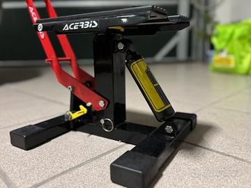 Cavalletto centrale Acerbis con pistone per la discesa. Il pistoncino aiuta a rendere la discesa della moto piu dolce.