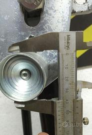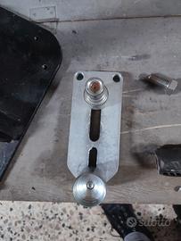 CAVALLETTO CENTRALE ALZA MOTO. SI POSIZIONA CENTRALMENTE AL TELAIO E PERMETTE DI SOLLEVARE LA MOTO STACCANDO ENTRAMBE LE RUOTE DA TERRA LASCANDOLE LIBERE. LA STRUTTURA RISULTA MOLTO PESANTE E SOLIDA (CIRCA 22KG). POSSIBILITÀ DI RITIRARE E PROVALO SULLA MOTO DOTATO DI RUOTE CON FERMI COSÌ DA AGEVOLARE FACILMENTE LO SPOSTAMENTO DELLA MOTO PERMETTENDO DI RUOTARLA DI 360° DIAMETRO PERNO SUPERIORE 20 mm DIAMETRO PERNO INFERIORE 40 mm INDICATIVAMENTE i modelli compatibili: Ducati Multistrada Ducati Monster 795 1000 1200 Ducati Hypermotard Ecc ecc !!!!!!!!!!!!! - MOLTO IMPORTANTE - !!!!!!!!!!!!!! VERIFICATE IL DIAMETRO DEI FORI DEL TELAIO. •LA PIASTRA È MODULARE E PERMERE DI ESSERE REGOLARE AL MILLIMETRO IN BASE AI FORI DEL TELAIO COSÌ DA POTER ESSERE USATA SU MOLTE MOTO. LA DISTANZA DEI DUE PERNI FISSATI SONO PLURI REGOLABILI: - REGOLAZIONE DELLA DISTANZA TRA I DUE PERNI CHE VANNO AL TELAIO DELLA MOTO; - INCLINAZIONE DEI PERNI (DISASSATI); - ALTEZZA DELLA PIASTRA MEDIANTE I 6 FORI FILETTATI DI ANCORAGGIO AL CAVALLETTO. I PERNI SONO SOSTITUIBILI(COME SI PUÒ VEDERE DALLE FOTO), QUINDI CON UNA SPESA MINIMA SI PUÒ ADATTARE A MOLTISSIME MOTO. COMPRAVENDITA TRA PRIVATI, SI ACQUISTA CON LA CLAUSOLA “VISTO E PIACIUTO” (AS-IS).