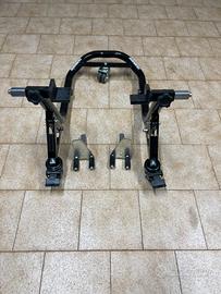 Cavalletto anteriore universale in acciaio con 3 ruote piroettanti. Queste ruote sono dotate di freno per mantenere la motocicletta statica in modalità ON e offrire la massima mobilità in modalità OFF.