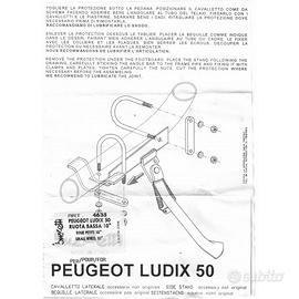(R.19629) Vendo sostegno laterale nuovo per Peugeot Ludix ruota bassa da 10" marca Buzzetti con codice 4638 di colore nero con staffa grigia , il prezzo si intende per l'intero kit , per istruzioni di montaggio vedere foto