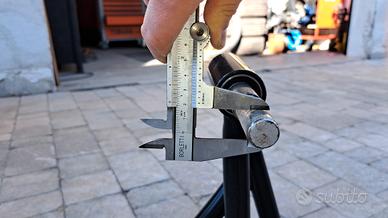 Vendo cavalletto posteriore per moto con forcellone monobraccio, marca BCR Components. Diametro Perno: circa 25,8 mm (misurato con calibro di precisione, come da foto). Usato in buone condizioni estetiche e funzionali. Presenta i classici segni di usura sul perno e sulla base dovuti al normale utilizzo In caso di spedizione essa è a carico dell'acquirente e da stimare da ufficio dedicato
