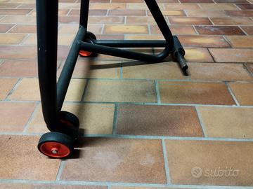 Vendo cavalletto posteriore Piega per moto con forcello e monobraccio. Diametro del perno 25,5/21,5 mm. Io lo utilizzavo su Ducati Streetfighter 821 e Hyperstrada 821.