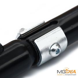 Dotato di staffe a forchetta, costruite interamente in metallo, per