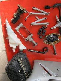 Vendiamo ricambi usati per honda cbr 1000 rr del 2005, uguali per tutti i modelli dal 2004 al 2007 in perfette condizioni moto non incidentata con soli 17.732 km di utilizzo spedizioni in tutta italia con corriere espresso 24h. ALCUNI ESEMPI E COSTI DEI RICAMBI: asse ruota ant 40, post. 40,regolatore di tensione cbr 80,statore cbr 1000 130,faro cbr 190,telaietto ant. 80,plex trasparente originale 40,carena inferiore sx 100, dx 100,piastre forcella CBR 150, portatarga cbr regolabile 60,2 forcelle CBR 450, radiatore CBR 200, strumentazione CBR 240,semimanubrio DX 70, sx 70,collettori CBR 150, terminale Yoshimura cbr 230,sella cbr ant. 70, post 60 , telaietto post. cbr 200, codone post. cbr 180, stop post. 40,mono 130, devioluci sx 50, dx40, pedana cbr ant. sx 80, dx 80, pedana passeg. sx 40, dx 40 leva cambio cbr completa 40,pedale freno cbr 40,forcellone post. 150, kit cilindretti: centralina quadro tappo serb. e sottosella 450, blocco motore venduto a pezzi:carter statore 60, carter frizione 100, cambio cbr completo 350,frizione cbr compl. 180,bielle e pistoni 200,testata cbr 250,pompa benz. serbatoio 130,copertura serbatoio 100, parafango cbr ant. 80,cerchio ant 250, post. 180,dischi cbr ant. 140, post. 40,pompa freno radiale 130, pompa cbr frizione 100,pinze radiali cbr 120, post. 40, impianto elettrico 100, pompa acqua completa 80 ecc ecc. Fate le vostre richieste ed invio foto dettagliate e costo dei ricambi non riportati in elenco in perfette condizioni già controllati e testati prima della vendita nella nostra officina, per info o whatsapp 3284883318 Piero.