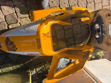 Vendo carene in vetroresina con frecce integrate, gli attacchi sono tutti sani, vanno riverniciate, hanno qualche graffio ma non sono rotte e non hanno mai subito una caduta, il faro davanti e diverso perchè erano state personalizzate.