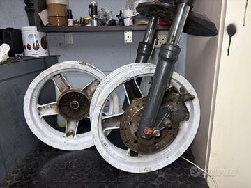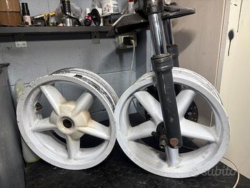 Vendo bellissimi cerchioni da 12 Pollici piu forcella ( completa ) paioli da 30mm , Tutto originalie per mbk Booster spirit , introvabili in queste condizioni, nel kit c’è anche la Pinza freno