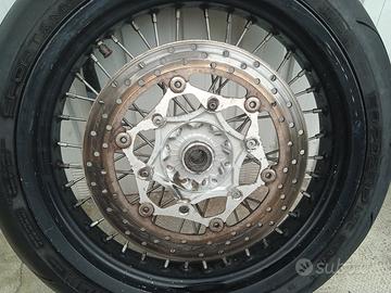 Vendo coppia cerchi KTM . Le ruote sono dritte non hanno bozzi e funzionano bene . La vernice non è perfetta soprattutto al posteriore ha qualche riga con riparazione
