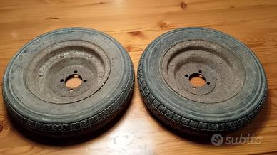 Vendo due cerchi da 8 pollici, originali piaggio, completi di gomme ceat come da foto (probabilmente le gomme sono coeve con i cerchi, non credo si possano utilizzare per strada, ma solo a livello espositivo), i cerchi necessitano di sabbiatura e verniciatura ma sembrano dritti
