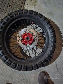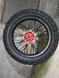 Vendo set completo cerchi a raggi enduro 21”/18” con dischi freno e pneumatici Mitas Enduro Trail+, già montato e collaudato su Honda XR 650 SM convertita ad assetto enduro. Usati pochissimo, sia i cerchi che i pneumatici, condizioni pari al nuovo, come visibile dalle foto. Motivo della vendita: la moto è stata venduta un mese dopo la modifica e l’acquirente ha voluto acquistare solo il kit supermotard. Cerchi a raggi enduro Misure: 21x1.6 anteriore / 18x2.15 posteriore, Alluminio 7075-T6, Mozzi 6061-T6 anodizzati rossi. Raggi in acciaio con nippli in ottone Assetto enduro 21/18. Compatibili Honda XR 650 SM / XR 650 L, Honda Transalp, Honda NX 650 Dominator. Freni Dischi freno anteriore e posteriore in Acciaio inox CNC Ottima modulabilità e dissipazione Equivalenti EBC MD6010D / MD1004 Pneumatici Mitas Enduro Trail+ Anteriore 90/90-21 Posteriore 120/90-18 Battistrada pari al nuovo Ideali per uso misto strada / off-road Perfetti per Honda XR 650 SM, conversione Supermotard → Enduro – secondo set ruote enduro. Le ruote hanno le stesse misure di Honda Transalp, Honda NX 650 Dominator (21” anteriore e 18” posteriore) e risultano ideali anche per altri modelli enduro/turismo con configurazione 21/18, come Honda XR 600 R (Suzuki DR 600, Kawasaki KLR 600 e Yamaha XT 600). Ideali per upgrade estetico e funzionale con cerchi a raggi di qualità per moto enduro. Vendita in blocco (cerchi + freni + pneumatici).