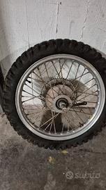 Vendo ruota anteriore e posteriore con cerchio Akront bollino giallo e mozzi conici Grimeca. Dimensioni dei pneumatici 2.50x21 e 3.25/3.50x18.