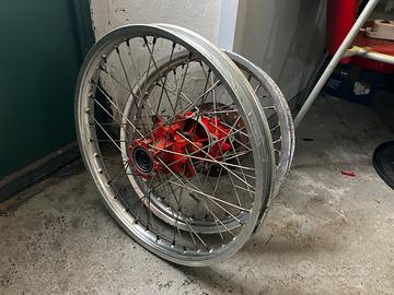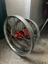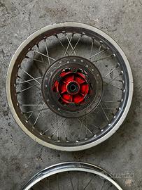 Vendo coppia di cerchi derivanti da una aprilia tuareg 125 (1985 - 94). Misure di riferimento 90 90 r21 anteriore, 120 90 r18. Vendo per smaltimento rimanenze magazzino