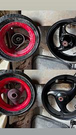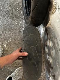 Tutti e due i cerchi sono perfetj come si vede quello davanti ha la gomma nuova incece qiekla sietro sarebbe da cambiare e do insieme il disco del cerchio anteriore