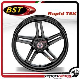 I BST Rapid Tek sono i cerchi in fibra di carbonio per Ducati Panigale V4 1100 2018- più avanzati al mondo. Realizzati con struttura monoscocca in composito di carbonio, offrono una combinazione unica di leggerezza estrema, rigidità torsionale elevata, bassa inerzia rotazionale e un'estetica racing inconfondibile.