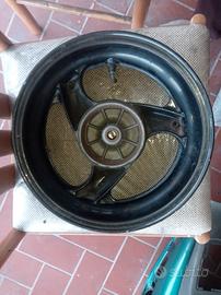 -coppia cerchi anteriore disco posteriore a tamburo, entrambi di colore nero, vernice non perfetta, presantano segni del tempo ed un po' di ossido in alcuni punti in qua e la;