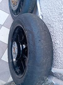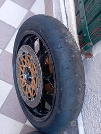 I cerchi e le gomme erano mo tate si un CBR 600 del 2016 gomme slik. e dischi freno anteriore Brembo posteriore galer ,gomme semi nuove PS cerchi diritti