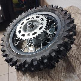 vendo cerchi con gomme nuove compresi di dischi e corona più 1 gomma anteriore e 1 posteriore , il cerchio posteriore e leggermente storto ma si può usare ...per sx 50 MC 50 TC 50