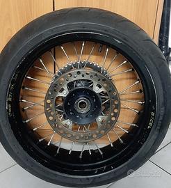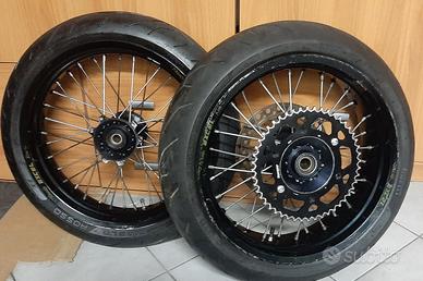 Coppia di cerchi motard 17/17 excel originali (NO aliexpress o repliche varie) completi di tutto: disco post, corona, gomme, disco anteriore maggiorato+pompa e pinza Brembo (completa di staffa per honda cr 250 dal 2002 al 2007)