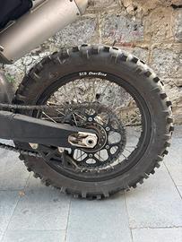 vendo cerchi enduro montati su husqvarna fe 450 2017 con solo 50 ore di utilizzo, non hanno nemmeno un graffio, sono solo sporchi, ovviemtne li pulisco prima di spedirli. compresi di corona, dischi e gomme (gomma posteriore da sostituire). sono compatibili con tutti i modelli ktm, husqvarna e gas gas dal 2003 al 2023 basta cambiare le boccole. vendo per passaggio a cerchi motard