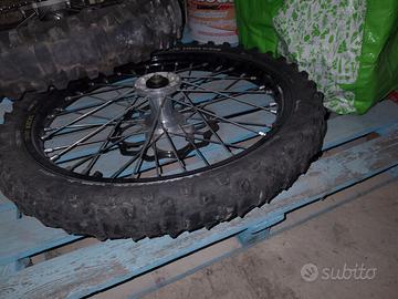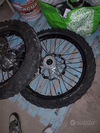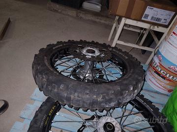 Vendo cerchi da enduro completi di disco anteriore, posteriore e corona gomme entrambe da cambiare Prezzo poco trattabile