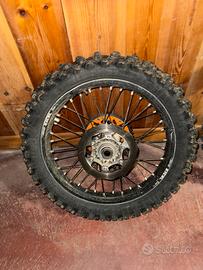 Vendo cerchi excel usati su ktm 450 , disco pieno maggiorato posteriore ,corona e disco anteriore usati 4/5 volte come nuvoi . Gomma anteriore in ottimo stato posteriore un po usurata. Cerchi posteriore presenta segni di usura.