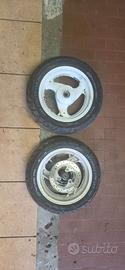 Vendo 2 cerchi, ant e post...sono stati verniciati a bomboletta quindi con un pò di diluente il bianco viene via, la gomma ant è abbastanza buona, quella dietro no..non sono storti o piegati...c è solo da ripulirli o verniciarli...