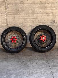 vendo perfetti cerchi FaBa, 17 pollici, lama e raggi neri, mozzo e nipples rossi, gomma anteriore da 120 posteriore 160, montano su beta-ktm-gasgas-husqvarna-stark varg