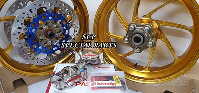 Come optional si possono avere pinze freno Brembo e il kit dischi freno racing superbike da 6mm full flottanti (si possono usare sia con pinze freno racing sia con pinze originali)
