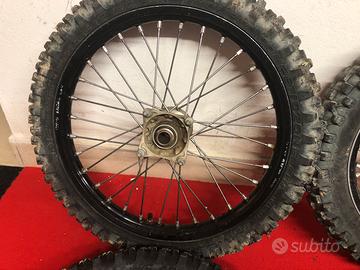 Vengo cerchioni per ktm 85, misure 17 ant 14 post. Comprese di treno di gomme in buono stato, gomma posteriore da sabbia nuova mai usata, piu camere d’aria 17 - 14. Vendo per passaggio a ruote grandi. Il tutto usato ma in buono stato. Primo contatto via messaggio. Grazie
