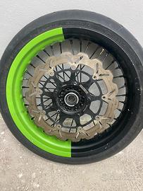 Vendo cerchi motard derivanti da Aprilia SXV 450/550. Le misure dei cerchi sono le seguenti: -ant. 120 60 R17 -post. 180 55 R17 Perni non disponibili. Gomme 80% circa. Prezzo leggermente trattabile.