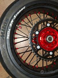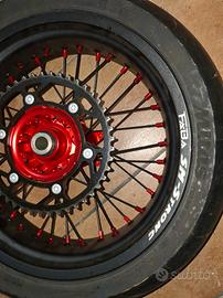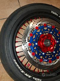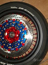 Vendo kit motard. Cerchi faba sm strong, mozzi/nipples rossi. (990€) Aquistati il 17 novembre 2025. Montati provati e smontati. Sono come nuovi, dispongo di fattura. Gommati mitas sportface nuove 100% (250€) Disco sp desing 320 mm (210€) Spostapinza Motomaster in CNC. (75€) Corona 45 denti. (25€) i prezzi nella descrizione intendono i prezzi di aquisto nuovi. TUTTI I COMPONENTI SONO STATI MONTATI PROVATI E SMONTATI È TUTTO COME NUOVO DISPONIBILE ANCHE CONSEGNA A MANO IN ZONA ROMA