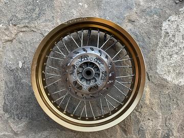 vendo cerchi motard completi di tutto, perno da 20, erano montati su kx 125 99/02. -cerchio anteriore 17x3 -cerchio posteriore 17x4.25 -disco anteriore braking in buone condizoni -disco posteriore buono -corona da 48 sunstr accetto offerte yz/ktm/125/250