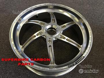 OZ GASS RS-A. Oz GASS RS-A, cerchio a 6 razze forgiato in alluminio di derivazione superbike. Grazie al nuovo sistema di forgiatura è ancora più leggero del modello OZ piega. La lega speciale di alluminio è forgiata con il nuovo sistema bi-direzionale, che garantisce l'ottenimento di una struttura più rigida in cui il peso è distribuito più uniformemente. Omologato per utilizzo stradale! Progettato per ridurre il peso e aumentare resistenza e rigidità. I cerchi sono poi rifiniti con macchinari a controllo numerico. Grazie alla particolare progettazione ed all'utilizzo di tecniche costruttive di avanguardia questi cerchi raggiungono lo "stato dell'arte"! Notate le cave di alleggerimento intorno al mozzo e sulle razze e le lavorazioni sul canale del cerchio. Una tale riduzione di peso sulle masse in muovimento rotativo, porta ad una riduzione del momento d'inerzia. Ciò si traduce in frenate profonde ritardate di svariati metri e accelerazioni brucianti. Tenere una traiettoria stretta al punto di corda diviene di estrema facilità. In oltre il livello di finitura e la qualità estrema del prodotto lo rende di grandissimo impatto estetico. Disponibili per: Aprilia, Bmw, Ducati, Honda, Kawasaki, Ktm, Mv Agusta, Suzuki, Yamaha. Intercambiabili agli originali. Colori: nero, silver, titanio, oro. Per informazioni orario continuato 8-18 dal lunedì al venerdi. Chiuso sabato, domenica e festivi.