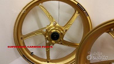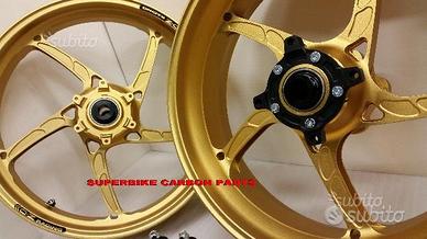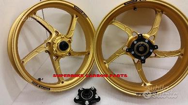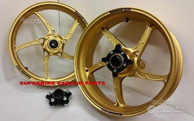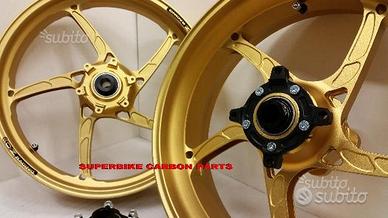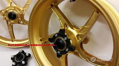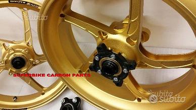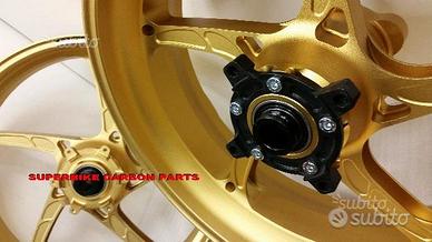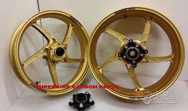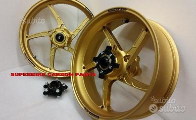 CERCHI OZ PIEGA R Oz Piega modello R, cerchio a 5 razze forgiato in alluminio, versione alleggerita, molto più leggeri degli original! OZ PIEGA R i cerchi forgiati in alluminio più performanti e leggeri al mondo. Forgiati in alluminio tramite le più moderne tecnologie e rifiniti con macchinari a controllo numerico. Grazie alla particolare progettazione ed all'utilizzo di tecniche costruttive di avanguardia questi cerchi raggiungono lo "stato dell'arte"! Notate le cave passanti di alleggerimento intorno al mozzo e sulle razze. Disegno a 5 razze. Completto di flange dischi, mozzo porta corona e boccole, pronti per il montaggio. LA COPPIA PER HONDA CBR 600 PESA SOLO 7,9 KG!!! Una tale riduzione di peso sulle masse in muovimento rotativo, porta ad una riduzione del momento d'inerzia. Ciò si traduce in frenate profonde ritardate di svariati metri e accelerazioni brucianti. Tenere una traiettoria stretta al punto di corda diviene di estrema facilità. In oltre il livello di finitura e la qualità estrema del prodotto lo rende di grandissimo impatto estetico. Disponibili per tutti i modelli di moto. Intercambiabili agli originali.