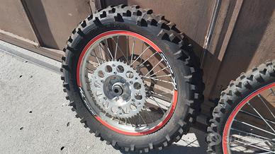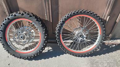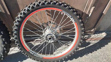 Vendo cerchi per Beta da enduro completi di dischi freni, corona, camere d'aria, e gomme 90/90/21 e 140/80/18. X info in privato ritiro a mano