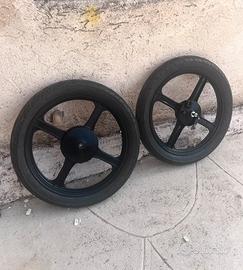 Vendo coppia di cerchi verniciati neri e gommati. Le gomme sono praticamente nuove come ben visibile in foto.