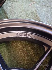 COPPIA CERCHI IN LEGA X pitbike motard,Mini Gp 12”12” Perno Da 15mm, Parastrappi Anteriore 2.50 Posteriore 2.75 Nuovi ( smontati e mai utilizzati)