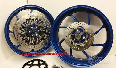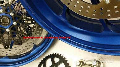 Cerchi PVM 8 razze in alluminio forgiato sportversion lightweight, nuovo modello, leggerissimi circa 7,6 kg la coppia pronta per il montaggio, stesso peso dei migliori cerchi in magnesio ma con la resistenza dell'alluminio forgiato e una durata nel tempo nettamente superiore. i cerchi sono anodizzati e sono disponibili varie colorazioni. Mozzo portacorona e Corona speciale in omaggio. Come optional si possono avere il kit dischi freno racing anteriori e posteriore, realizzati da pvm. : I cerchi Pvm 8 razze prevedono anche una serie di servizi post vendita gratuiti : viene offerto un controllo annuale dei cerchi per 2 anni, ad ogni controllo vengono sostituiti i cuscinetti e i parastrappi, in più il cliente in del controllo annuale può richiedere la rianodizzazione dei propri cerchi anche con un differente colore rispetto al precedente.