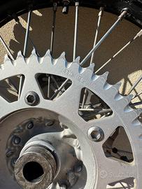 Vendo cerchi SMPro platinum neri completi di dischi freno anteriore e posteriore, corona come nuova e boccole per yz 125, yzf 250/450. Non presentano crepe. gommati dunlop: - anteriore dunlop 80/100/21 come nuova - posteriore dunlop 100/90/19 70% I cerchi montavano su yz 125 2019 ma sono adattabili a qualsiasi moto cross/enduro cambiando le boccole. Per qualsiasi info o foto scrivetemi in privato o chiamate. Valuto offerte