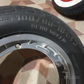 Coppia cerchi tubeless 3.50 10 più pneumatici usati uno a 80% e uno a 10%.non smonto.non separo