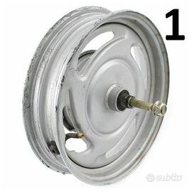 (R.10067) Vendo cerchione anteriore ruota in ferro usato per Kymco CX 50 cc dal 1993, Filly 50 cc dal 1998, DJ 50 cc dal 1991 con codice 00156401 marchiato MT 2.15 x 10 DOT, 215x10, il prezzo si intende per singolo pezzo,per applicazioni vedere foto , disponibili più modelli :