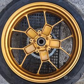 Cerchio posteriore OZ EVO FORGED, montato su Aprilia Dorsoduro ma compatibile anche con altri modelli (Shiver, Tuono, RSV etc.). Misura 6 × 17″. Smontato e pronto per la spedizione o ritiro.