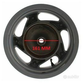 (R.12939) Vendo cerchione ruota anteriore per freno a tamburo usata per Honda Pantheon 125 e 150 cc marchiato Grimeca con misura 12 x 3.50 di colore grigio con diametro tamburo 161 mm , per misure vedere foto