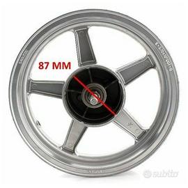 (R.8275) Vendo ruota in lega nuova posteriore marca Grimeca di colore grigio misura 2.10 x 10 cinque razze per Benelli , Motobi , Peripoli ecc. per freno a tamburo, per misure vedere foto