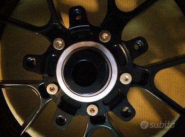 vendo un cerchio posteriore Marchesini in alluminio forgiato, misura 6x17 pollici. Il cerchio è completo di cuscinetti, distanziali, ammortizzatore e supporto pignone, come si vede nelle foto. Il diametro del perno passante è di 25 mm, il cerchio può essere adattato a diverse moto.