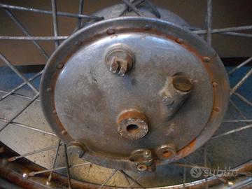 Vendo cerchio cerchione ruota anteriore per moto puch 125 175 in tutta onestà non so dire di che anno sia, completa di cartella porta ceppi freni, ruggine superficiale ma con una bella lucidata viene un buon conservato a mio parere