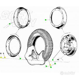 (R.20838) Vendo cerchio ruota nuovo da dieci pollici per Piaggio Vespa GS e Vespa 180 SS Super Sport largo da entrambe le parti , simile a codice Piaggio 055125 , per applicazioni e spaccato vedere foto