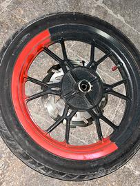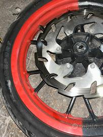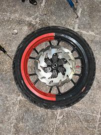 Vendo cerchione anteriore da 17 bicolore con disco freno e copertone e se serve anche impianto frenante completo con pinza pompa disco leva e pastiglie nuove