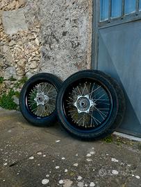 Vendo cerchi motard originali ktm montati su un exc 300 del 2013 ma compatibili con tante altri modelli o moto