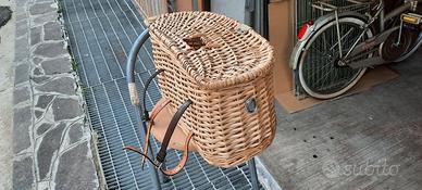 Bellissimo Cestino-Bauletto da portapacchi in vimini completo di cinghiette di fissaggio in pelle/cuoio - misure cm. 40 x23 - H cm. 25 come nuovo - fondo di magazzino