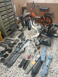 ricambi vari Piaggio sì ciao bravo super bravo super bravo 3 Grillo boss box Gilera Eco CBA . telaio slitta manubrio fari forcella sella sottosella pedali portapacchi cavalletto pedane fianchetti bambine ruote cerchi in lega da 16 e 14 cerchi a raggi 16-17 , motore puntine motori elettronici motore superbravo 3 marce kick starter , mozzo millerighe variatore frizione correttori campana trasmissione completa a variatore gomme da 17 per ciao serbatoio bobina centralina marmitta carburatore catena tendicatena ammortizzatori tappo comandi leve manopole filtro alcuni ricambi ciao r special lusso c7 px ecc